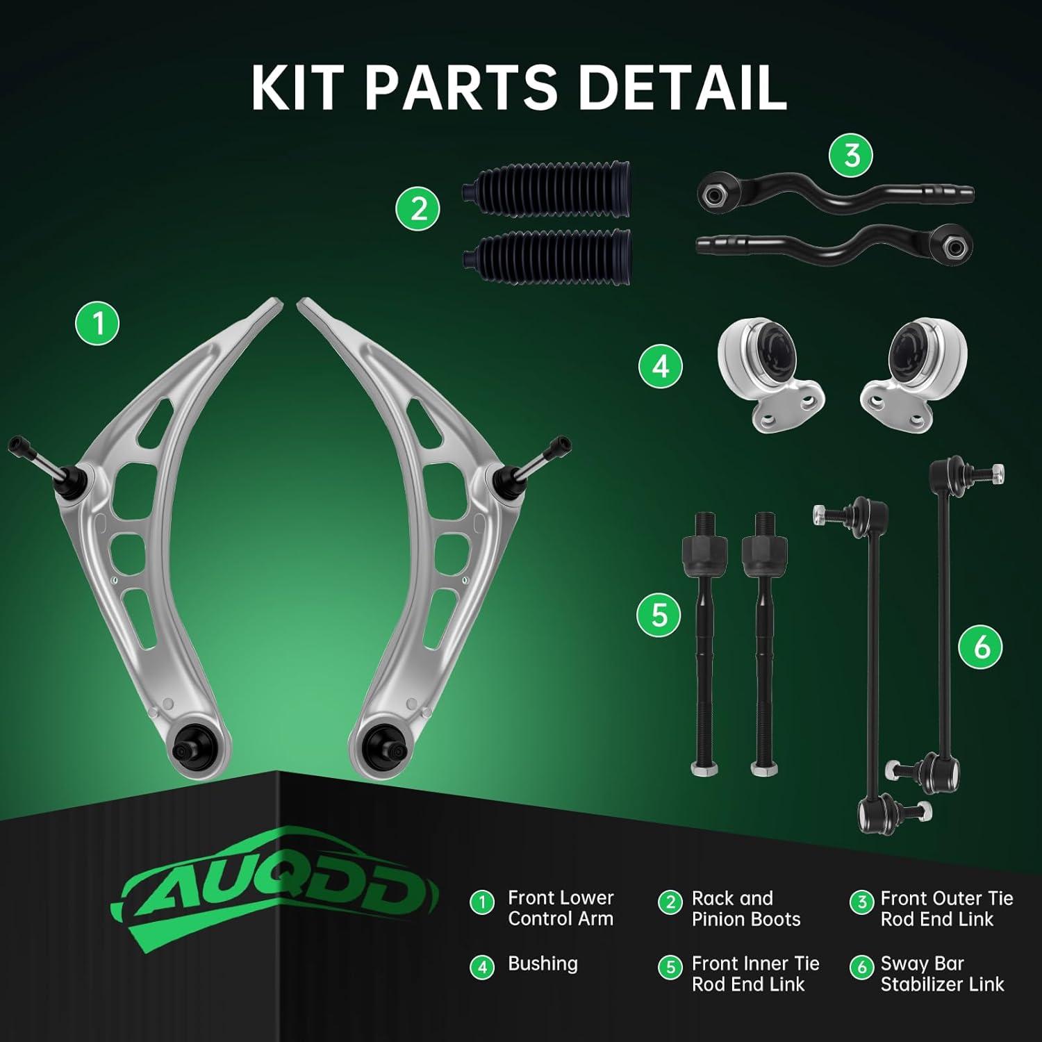 Be the first to review “AUQDD 10Pc Front End Kit Fit For 08-20 Do-dge Grand Caravan, 08-16 Ch-rysler Town & Country, 2 Lower Control Arm w/Ball Joint 2 Sway Bar Link 4 Outer Inner Tie Rod End (K622033 K7258 ES80646 ES800403)(10Ps (For 01-06 3-Series E46))”
