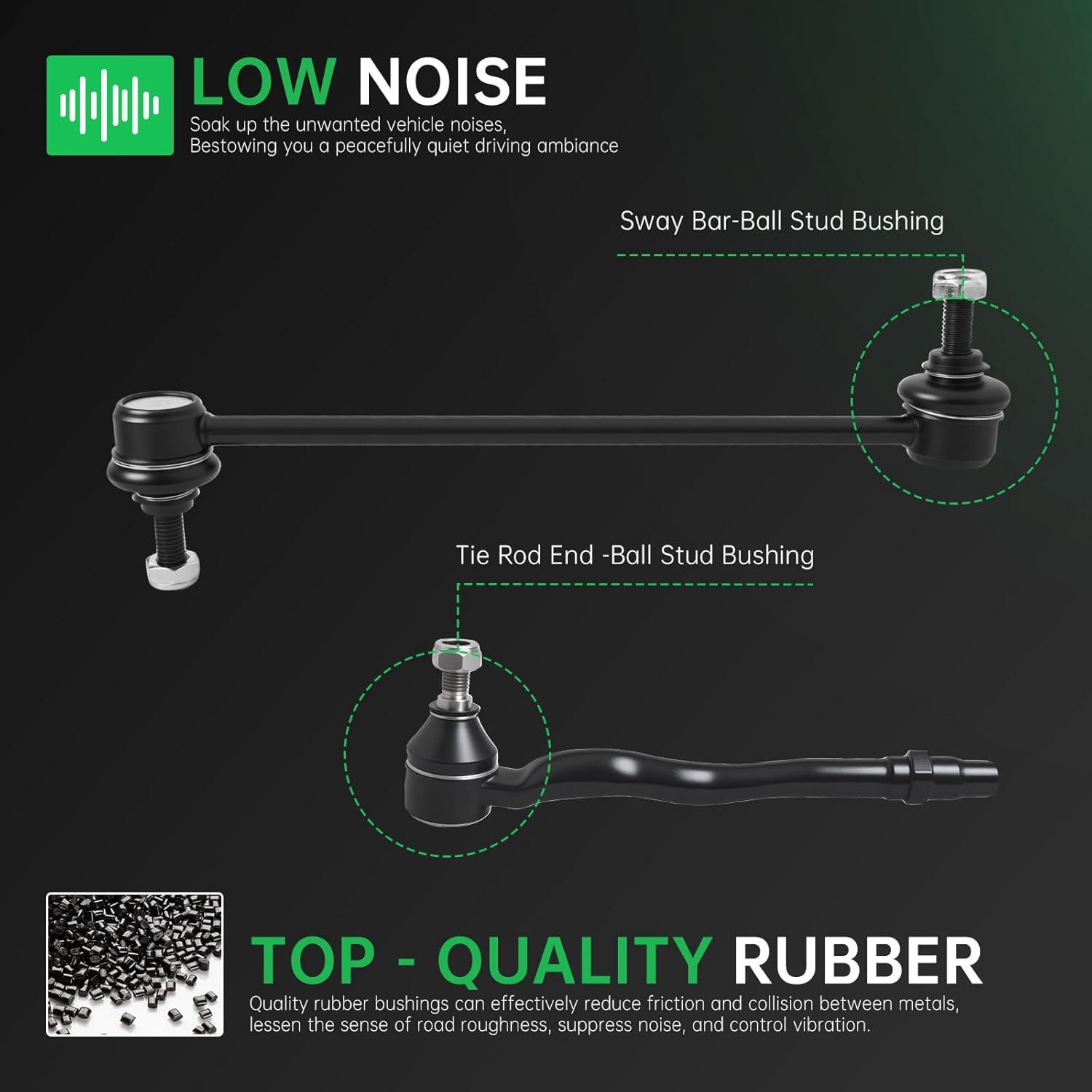【Suspension Kit Include】 2 x Front Lower Control Arm w/Ball Joint Assembly – ( K622033 + K622034 ) Driver & Passenger Side, 2 x Front Outer Tie Rod End Links – ES800403, 2 x Front Inner Tie Rod End Links – ES80646, 2 x Front Stabilizer Sway Bar End Links – K7258, 2 x Rack and Pinion Boots