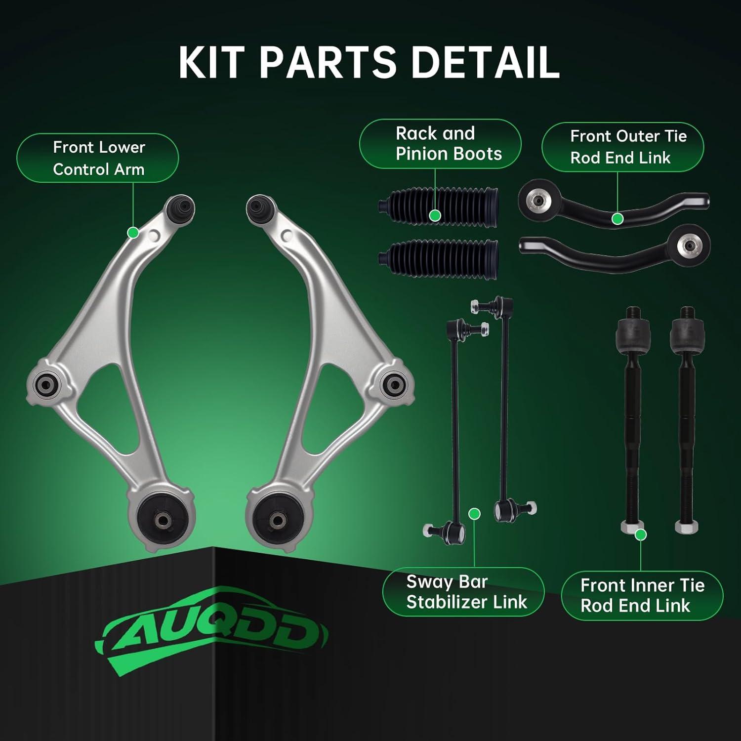 AUQDD 10Pc Front End Suspension Kit Fit For 13-20 Ni-ssan Pathfinder, In-finiti QX60, 2 Lower Control Arm w/Ball Joint 2 Sway Bar Link 4 Outer & Inner Tie Rod End (# K623063 K750282 EV801209 ES801265)(10Pc (For 15-18 Altima/16-23 Maxima))