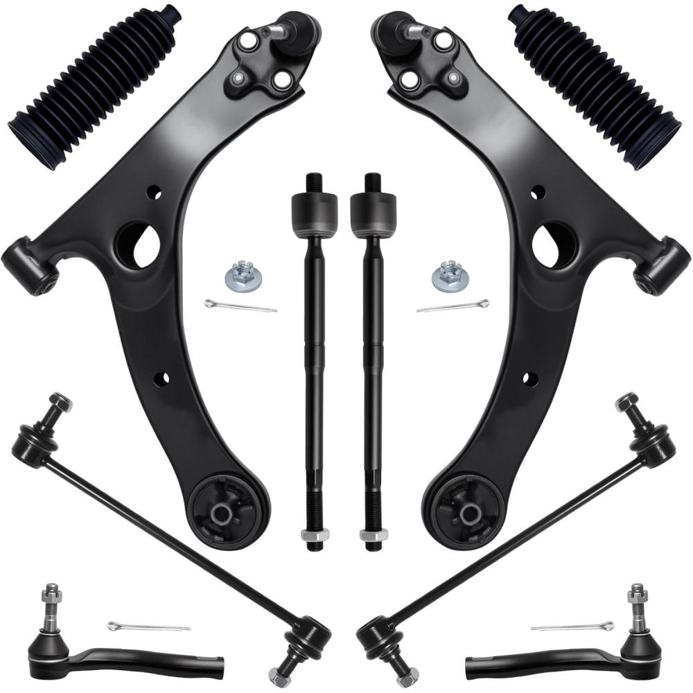 AUQDD 10Pc Front End Suspension Kit Fit For 2004-2009 To-yota Prius, 2 Lower Control Arm w/Ball Joint 2 Sway Bar Link 4 Outer Inner Tie Rod End (# CMS861128 K640960 K80230 EV80304 ES80302 ES80303)
