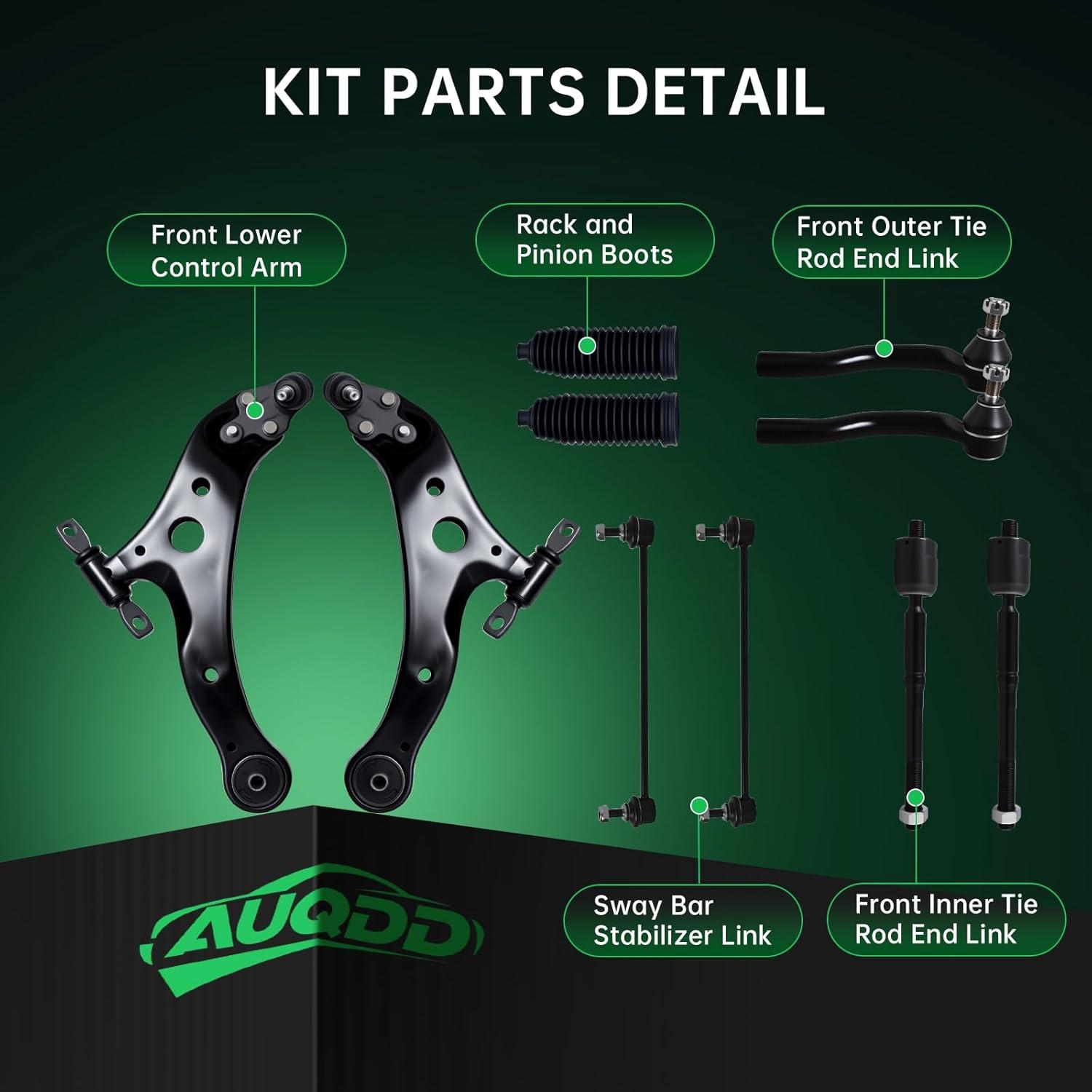 Be the first to review “AUQDD 10Pc Front End Suspension Kit Fit For 2007-2011 To-yota Camry, 2 Lower Control Arm w/Ball Joint 2 Sway Bar Link 4 Outer & Inner Tie Rod End (# K621476 K621477 K750123 EV800085 ES80602 ES80603)(10Pcs (For 07-11 Camry))”