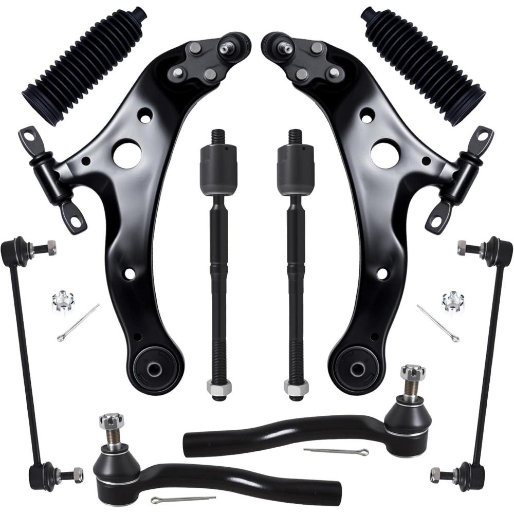 imageAUQDD 10Pc Front End Suspension Kit Fit For 20072011 Toyota Camry 2 Lower Control Arm wBall Joint 2 Sway Bar Link 4 Outer ampamp Inner Tie Rod End  K621476 K621477 K750123 EV800085 ES80602 ES8060310Pcs For 1217 Camry1318 Avalon
