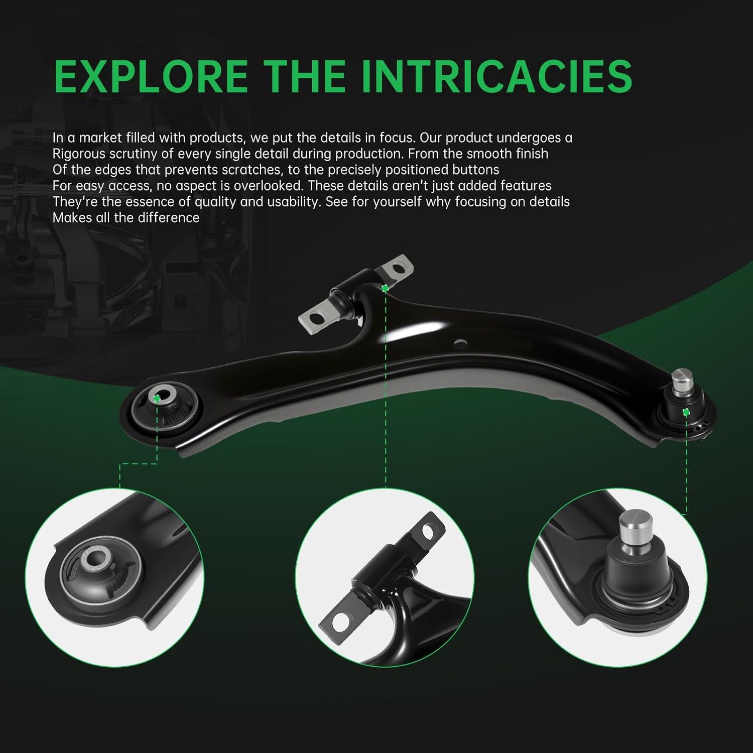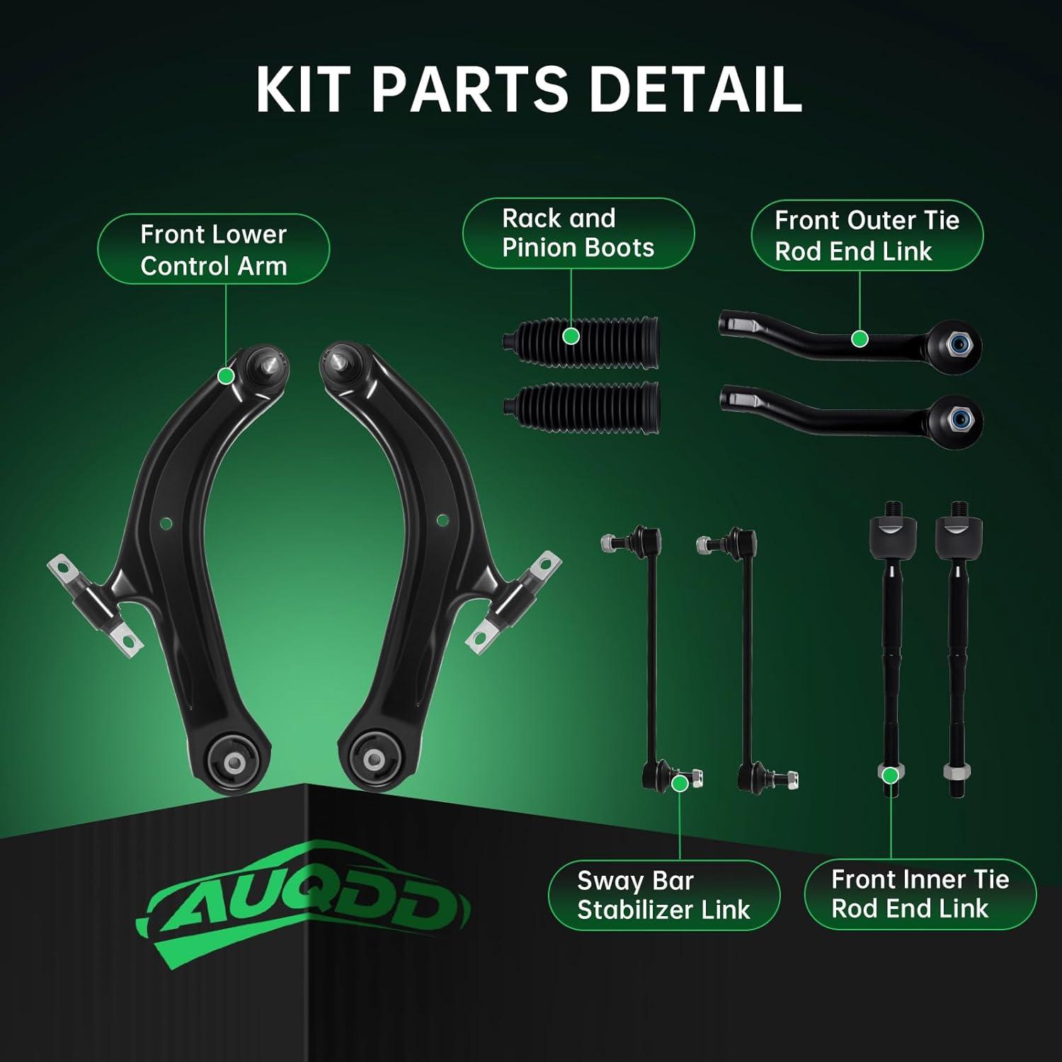 AUQDD 10Pc Front End Suspension Kit Fit For 2011-2017 Ni-ssan Quest, 2 Lower Control Arm w/Ball Joint 2 Sway Bar Link 4 Outer & Inner Tie Rod End 2 Boots (# 524-221 524-222 K750783 EV801340 ES801267)