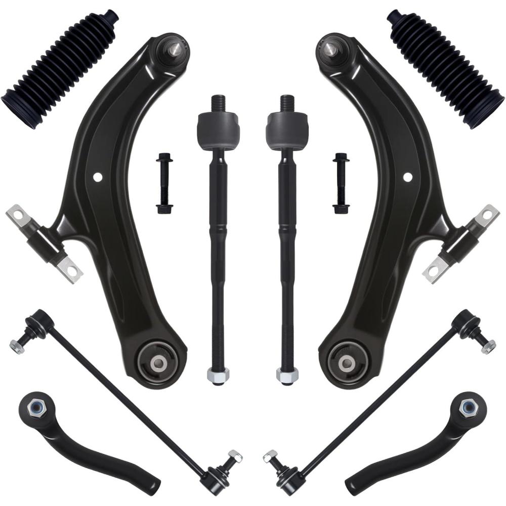 AUQDD 10Pc Front End Suspension Kit Fit For 2007-2012 Ni-ssan Sentra, 2 Lower Control Arm w/Ball Joint 2 Sway Bar Link 4 Outer Inner Tie Rod End (# K620373 K620374 K750096 EV800820 ES800574 ES800575)