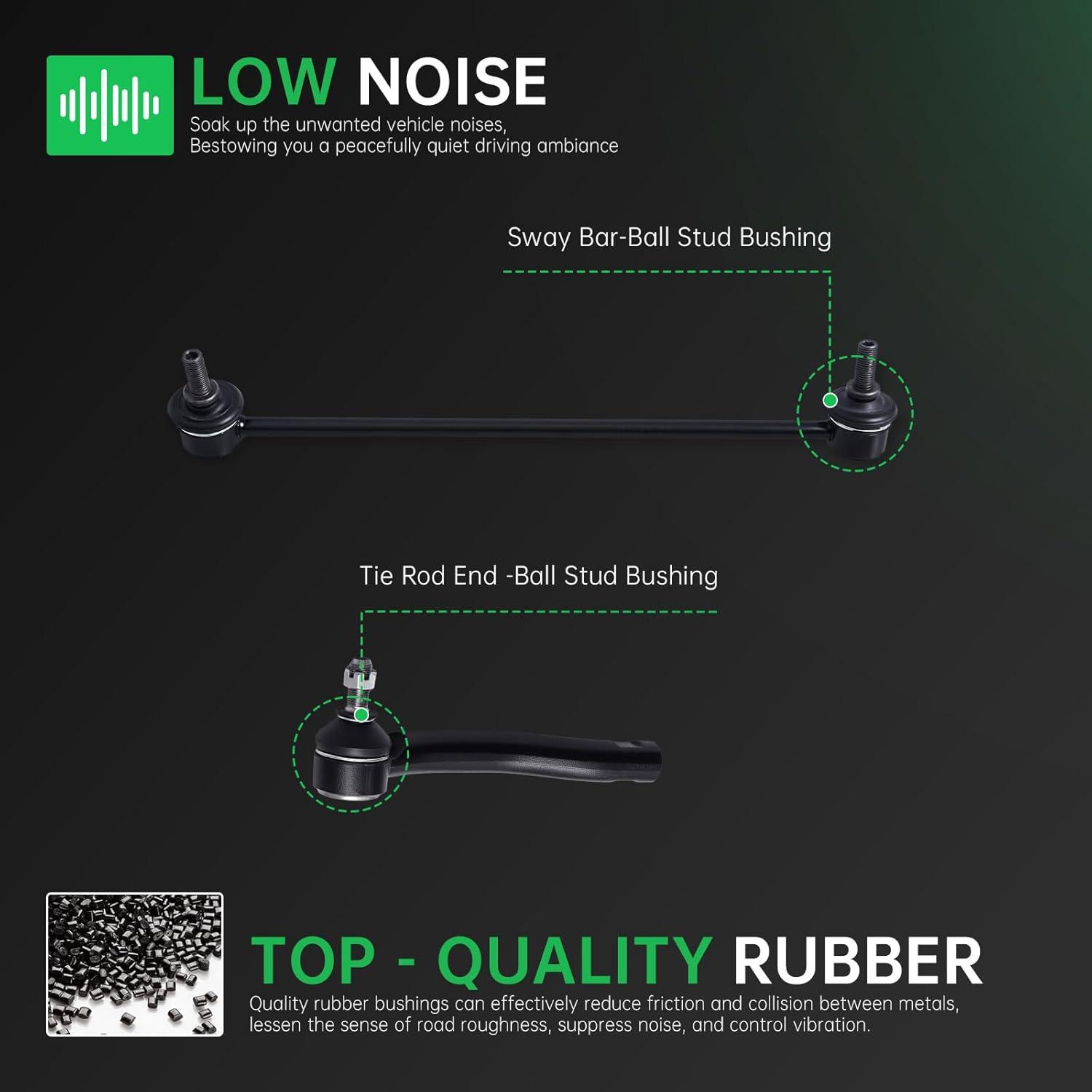 【Suspension Kit Include】 – 2 x Front Lower Control Arm w/Ball Joint Assembly – ( 520-695 + 520-696 ) Driver & Passenger Side, 2 x Front Outer Tie Rod End Links – ( ES800912 + ES800913 ), 2 x Front Inner Tie Rod End Links – EV800906, 2 x Front Stabilizer Sway Bar End Links – ( K750604 + K750605 ), 2 x Rack and Pinion Boots.