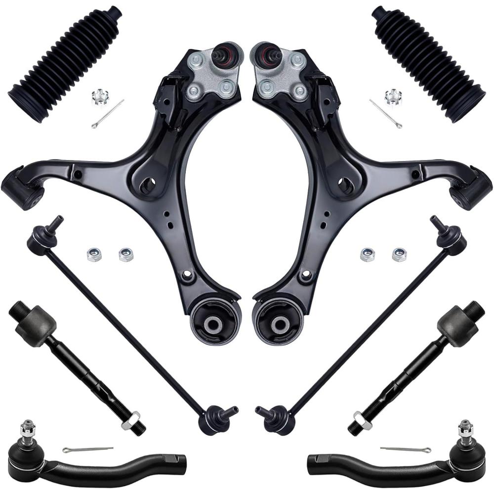 imageAUQDD 10Pc Front End Suspension Kit Fit For 20122015 Honda Civic 1315 Acura ILX 2 Lower Control Arm wBall Joint 2 Sway Bar Link 4 Outer ampamp Inner Tie Rod End  520695 K750605 EV800906 ES800912