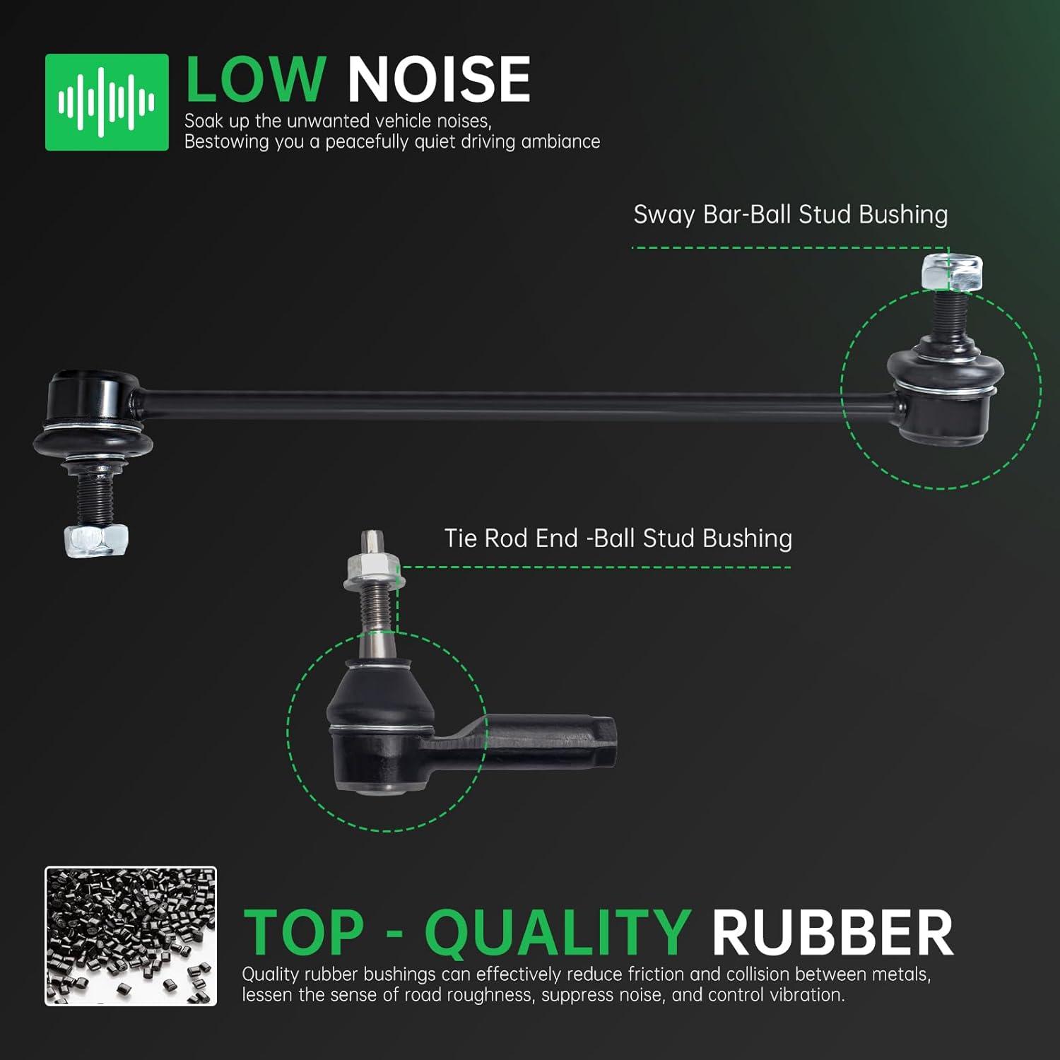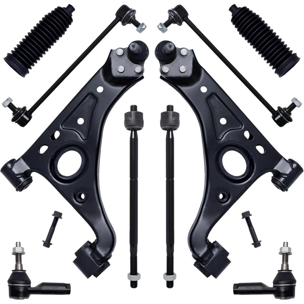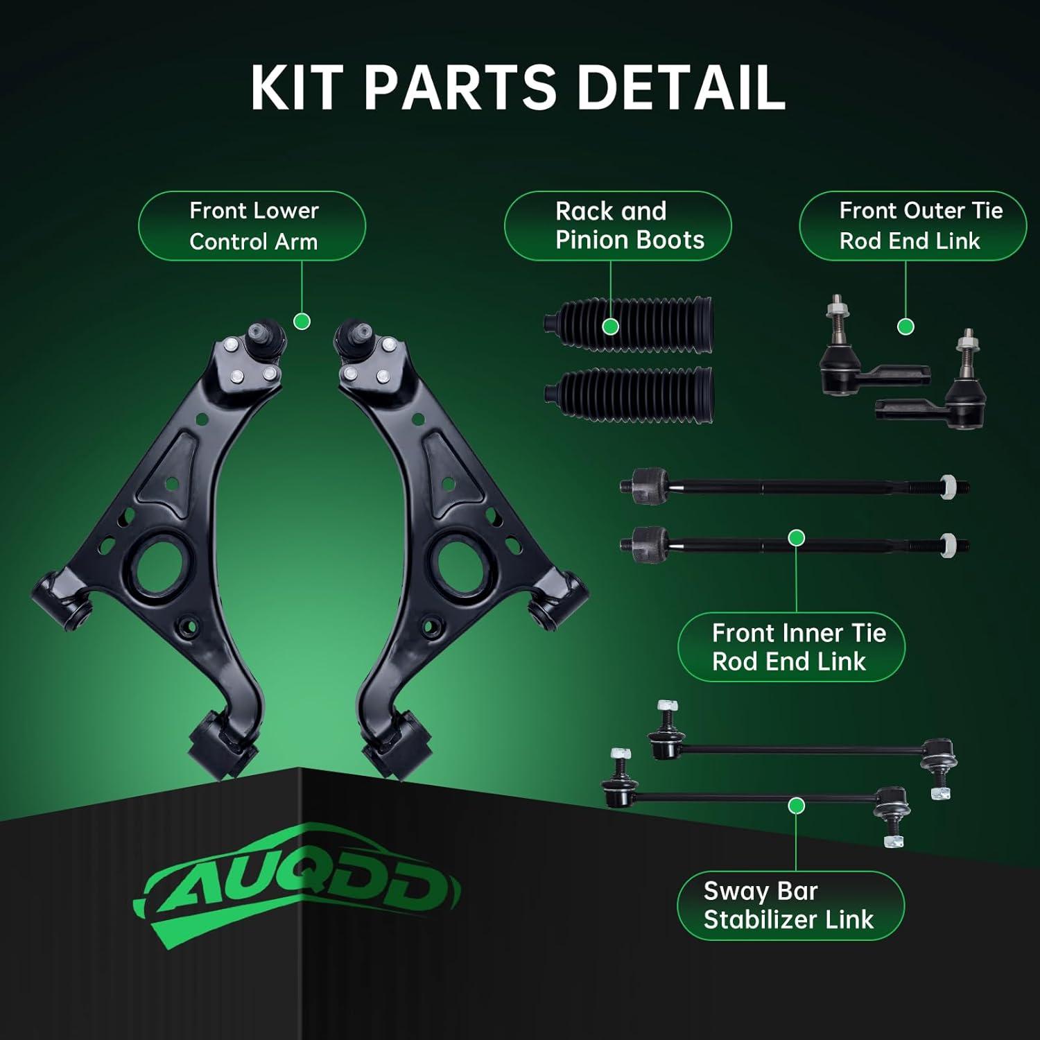 【Suspension Kit Include】 – 2 x Front Lower Control Arm w/Ball Joint Assembly – ( K623137 + K623138 ) Driver & Passenger Side, 2 x Front Outer Tie Rod End Links – ES801558, 2 x Front Inner Tie Rod End Links – EV800936, 2 x Front Stabilizer Sway Bar End Links – ( K750682 + K750683 ), 2 x Rack and Pinion Boots.