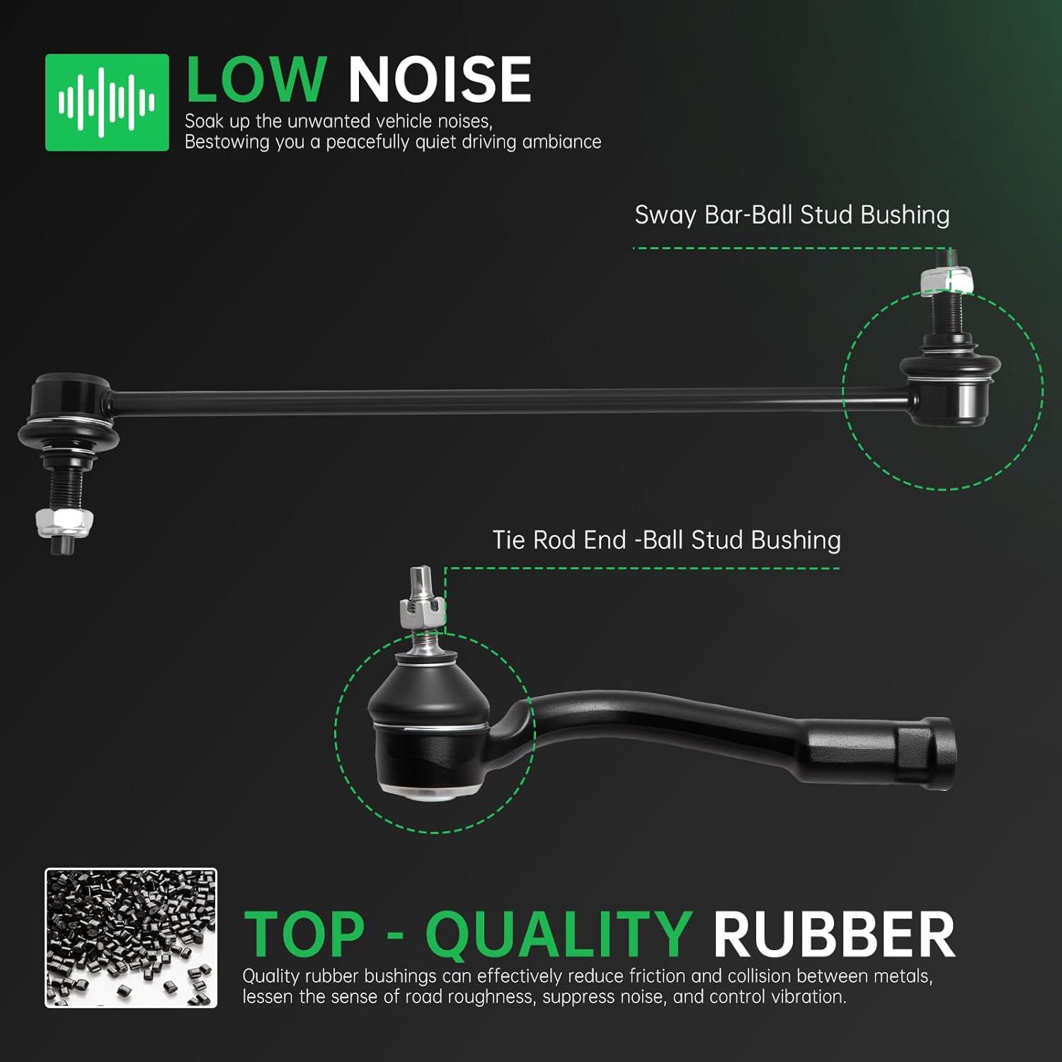 【Suspension Kit Include】 – 2 x Front Lower Control Arm w/Ball Joint Assembly – ( K623733 + K623734 ) Driver & Passenger Side, 2 x Front Outer Tie Rod End Links – ( ES801507 + ES801508 ), 2 x Front Inner Tie Rod End Links – EV801307, 2 x Front Stabilizer Sway Bar End Links – ( K750792 + K750793 ), 2 x Rack and Pinion Boots