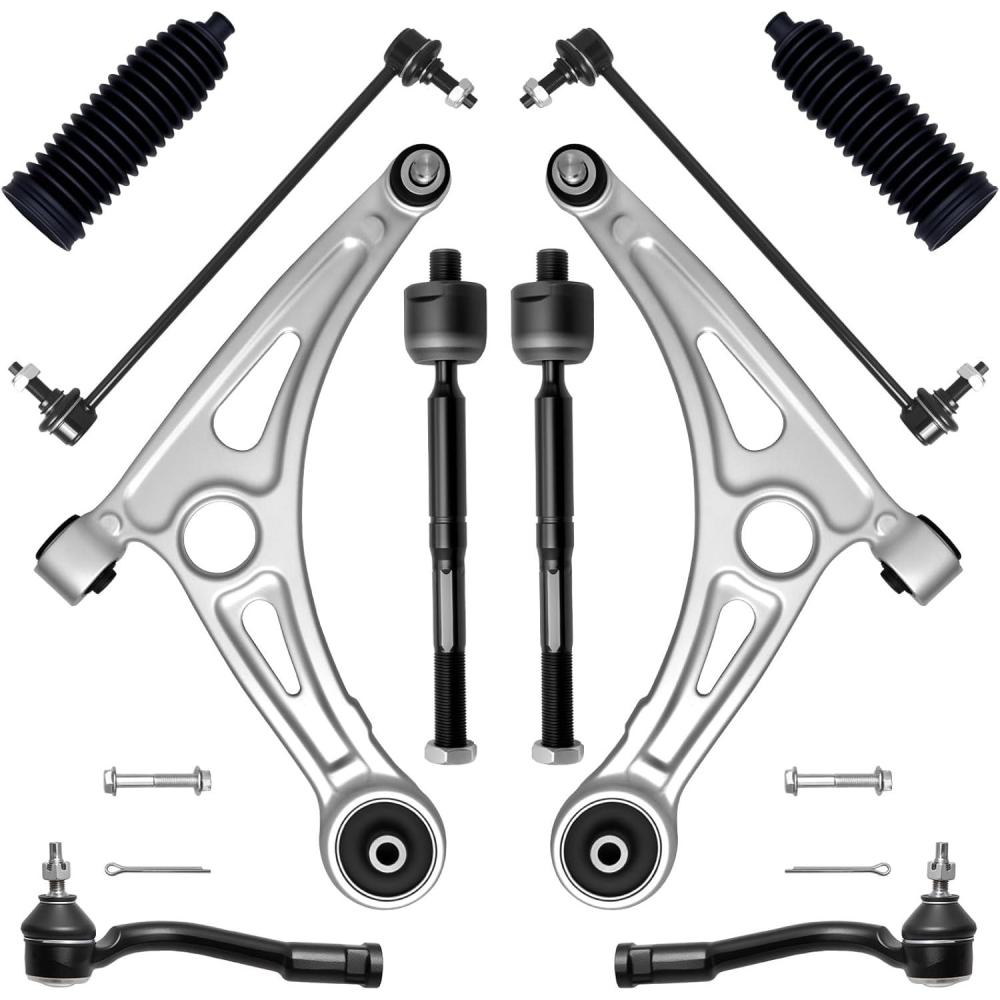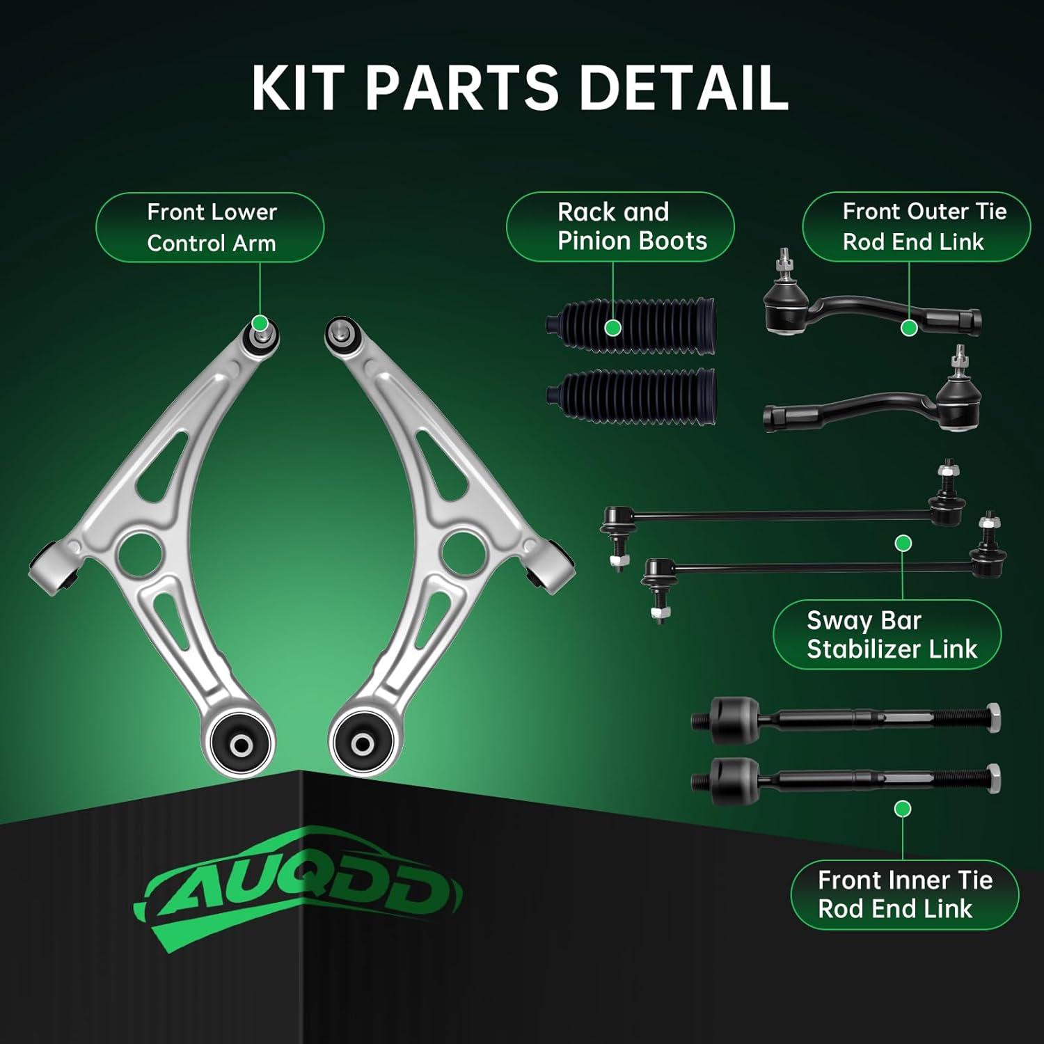 AUQDD 10Pc Front End Suspension Kit Fit For 2004-2009 Ni-ssan Quest, 2 Lower Control Arm w/Ball Joint 2 Sway Bar Link 4 Outer & Inner Tie Rod End (# K620560 K620561 K80255 K80256 EV800227 ES800404)