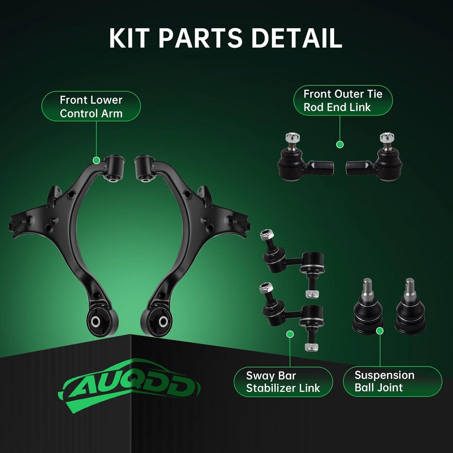 imageAUQDD 10Pcs Front End Suspension Kit Fit For 20062011 Honda Civic 13L 18L 2 Lower Control Arm wBall Joint 2 Sway Bar Link 4 Outer Inner Tie Rod End  K620382 K620383 EV800246 ES800373 K807688Pcs For 0105 Civic