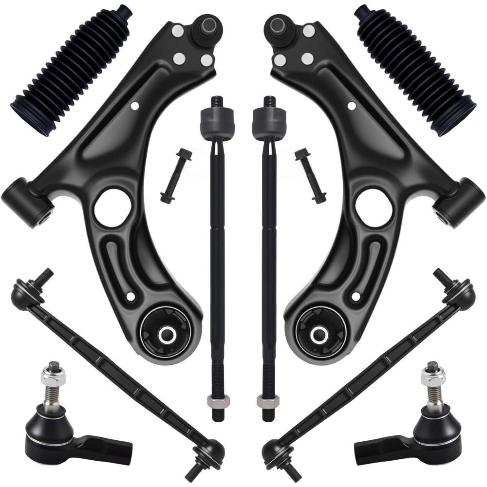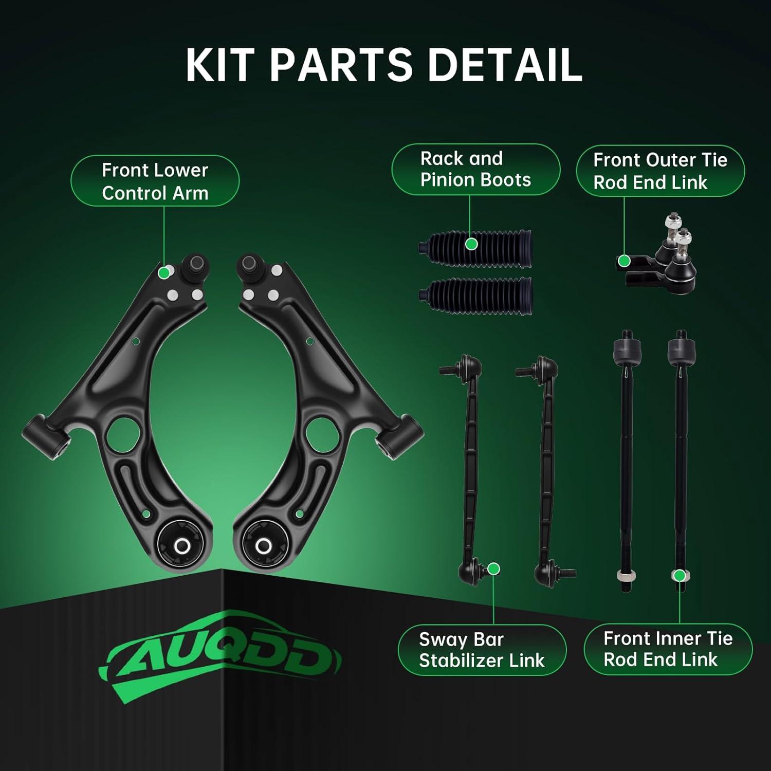 AUQDD 10Pcs Front End Suspension Kit Fit For 2012-2015 2016-2020 Chevy Sonic, 2 Lower Control Arm w/Ball Joint 2 Sway Bar Link 4 Outer & Inner Tie Rod End (# K622426 K622428 K750630 EV800936 ES800929)