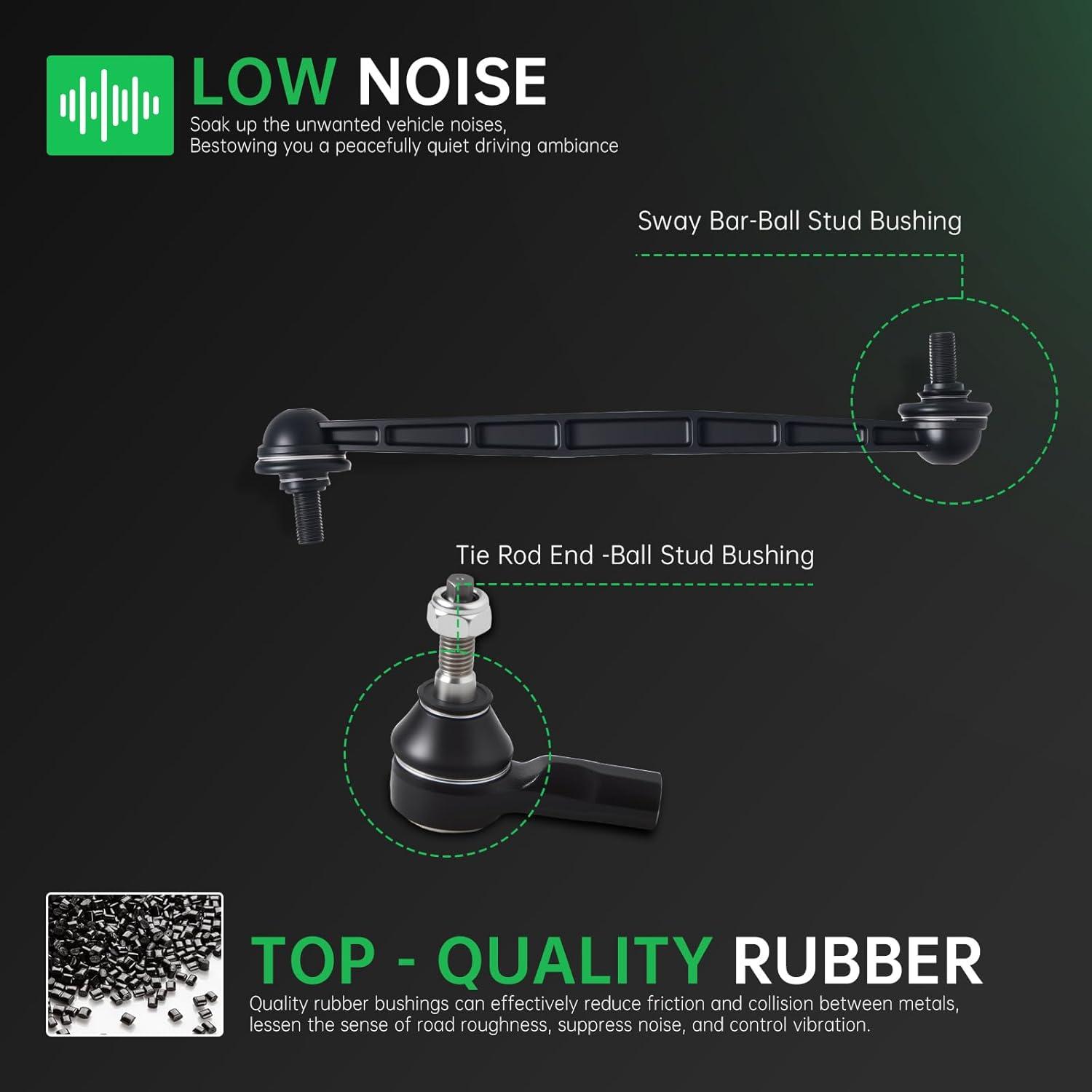 【Suspension Kit Include】 2 x Front Lower Control Arm w/Ball Joint Assembly – ( K622426 + K622428 ) Driver & Passenger Side, 2 x Front Outer Tie Rod End Links – ES800929, 2 x Front Inner Tie Rod End Links – EV800936 , 2 x Front Stabilizer Sway Bar End Links – K750630 , 2 x Rack and Pinion Boots
