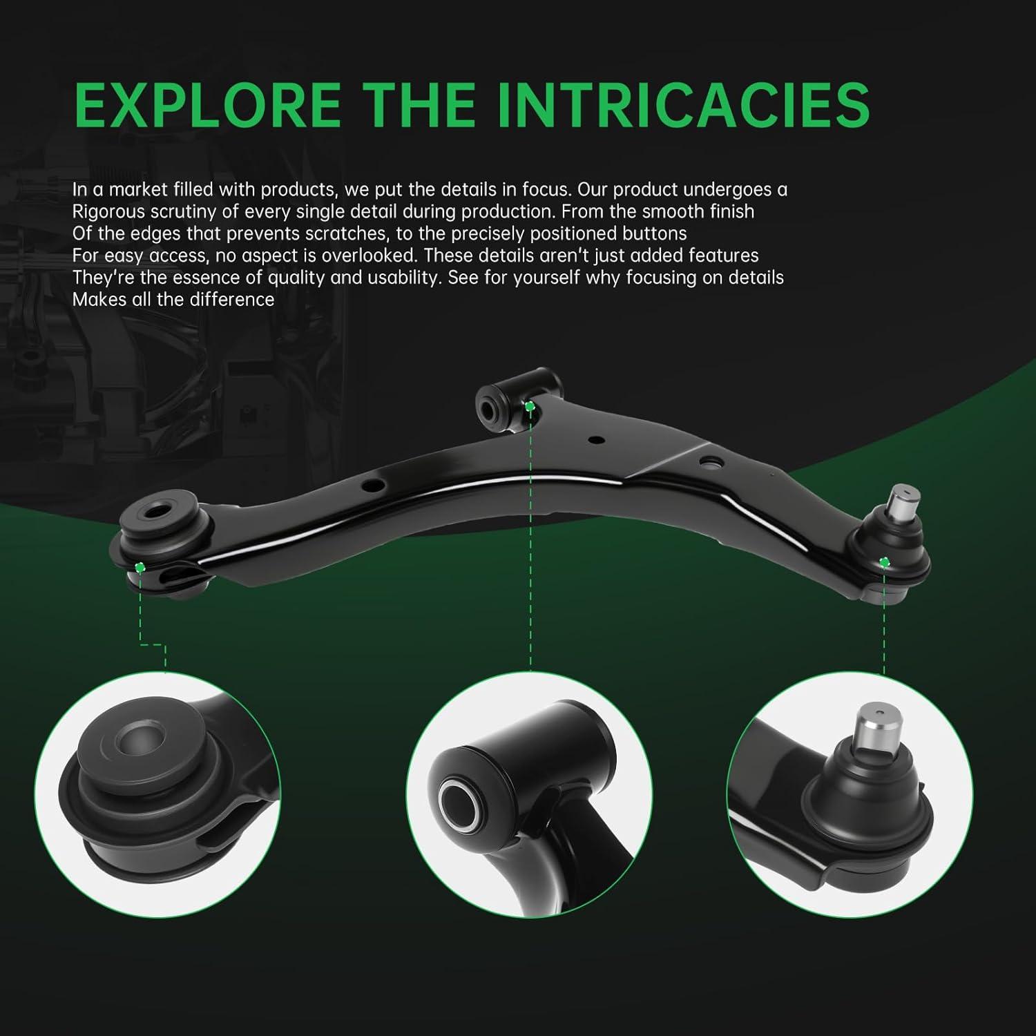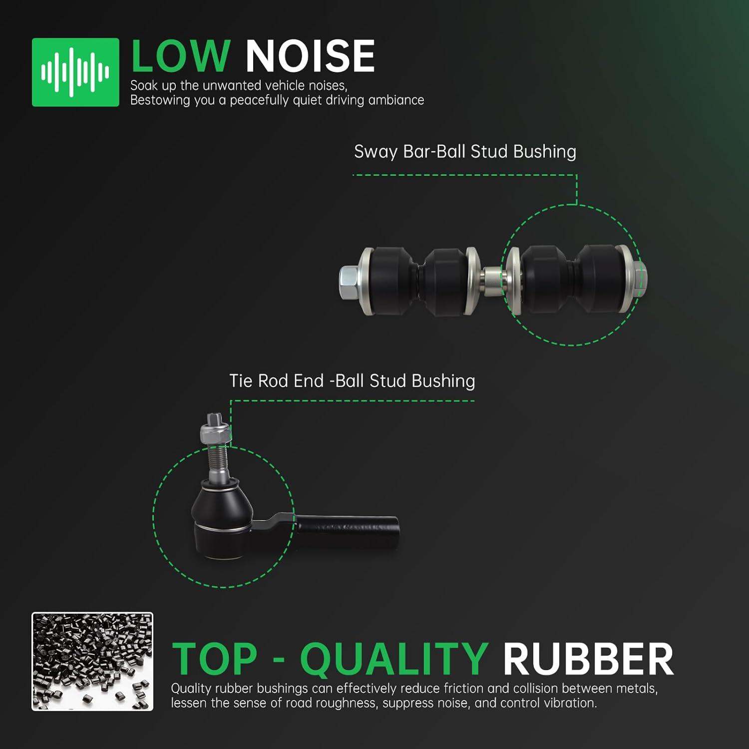 【Suspension Kit Include】 2 x Front Lower Control Arm – ( K641333 + K641334 ) Driver & Passenger Side, 2 x Front Lower Ball Joints – K500120, 2 x Front Outer Tie Rod End Links – ES800408, 2 x Front Inner Tie Rod End Links – EV800611, 2 x Front Stabilizer Sway Bar End Links – K750382, 2 x Rack and Pinion Boots