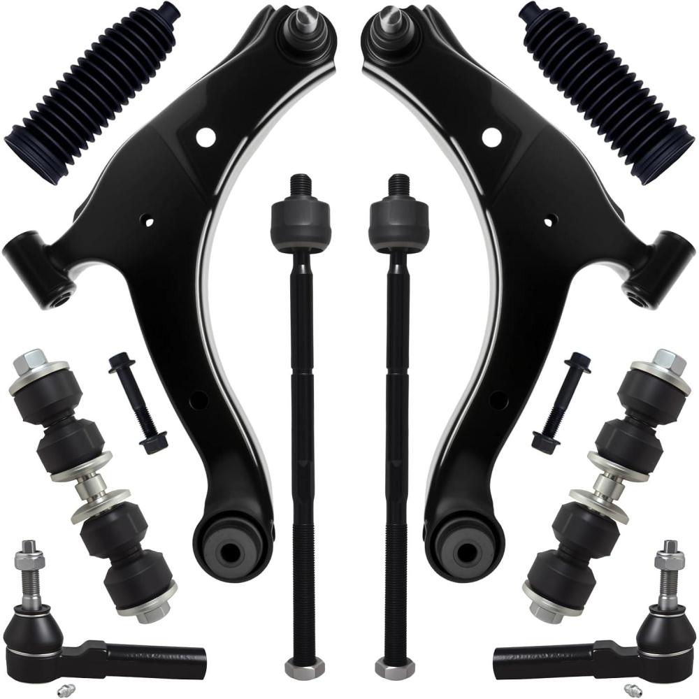 imageAUQDD 12Pc Front End Suspension Kit Fit For 20092020 Dodge Journey 2 Lower Control Arm 2 Ball Joint 2 Sway Bar Link 4 Outer Inner Tie Rod End 2 Boots  K641333 K750382 EV800611 ES800408 K50012010Pc For 0110 PT Cruiser