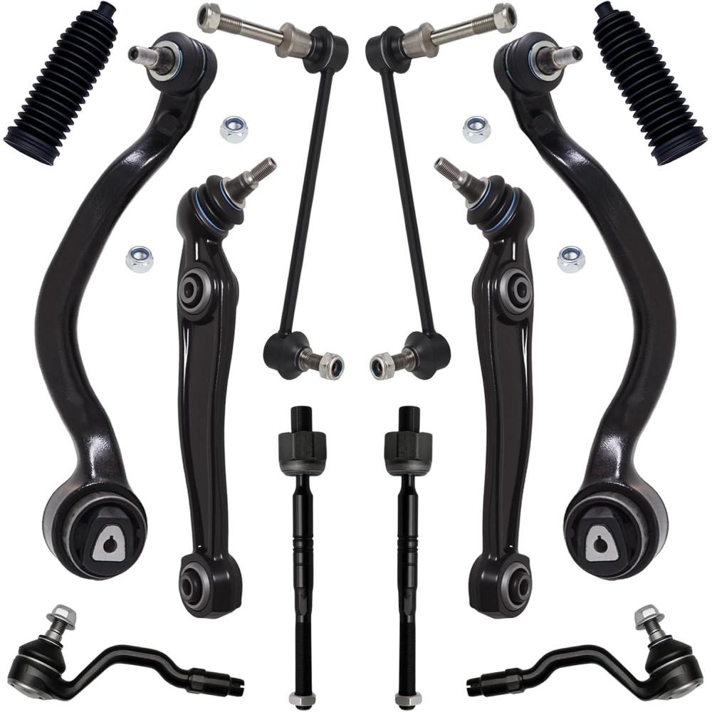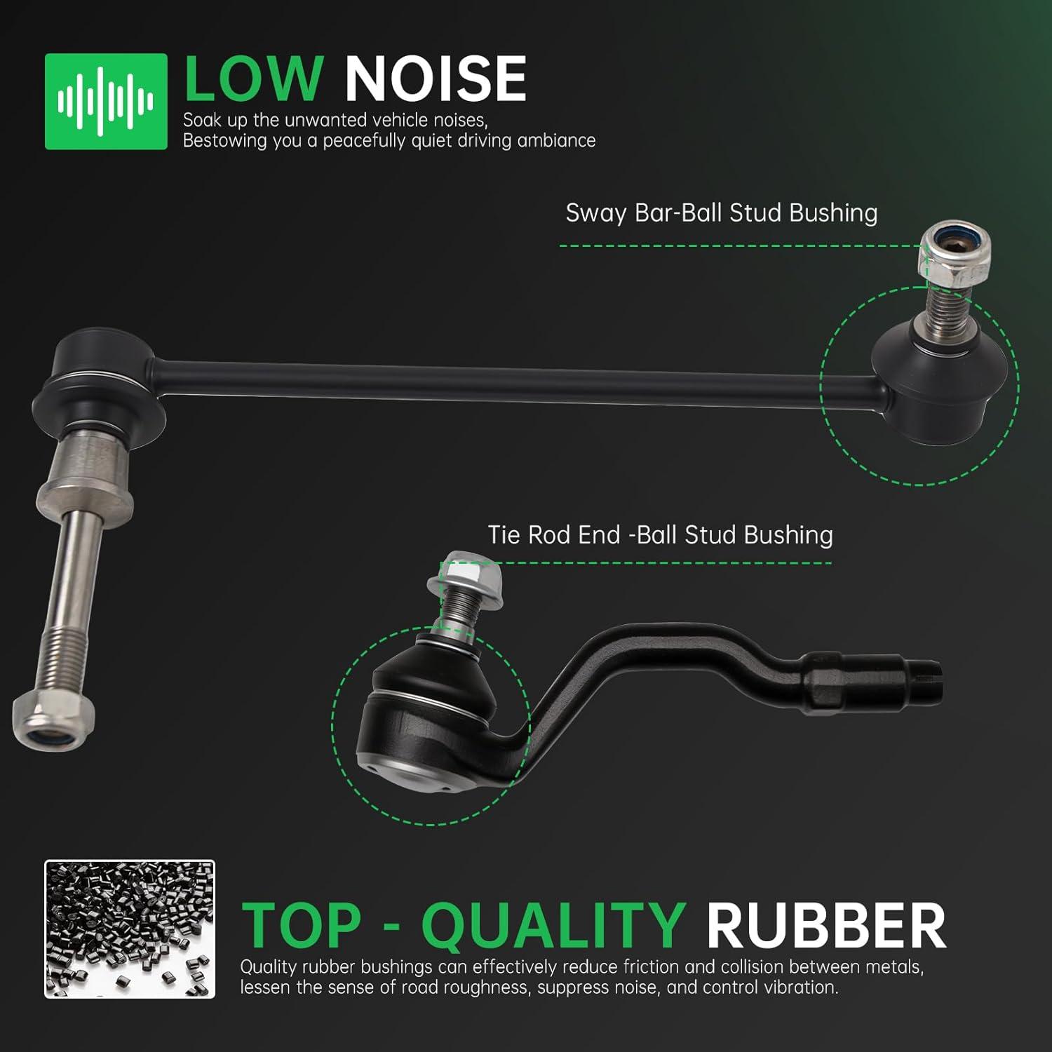 【Suspension Kit Include】 – 2 x Front Lower Forward Control Arm w/Ball Joint Assembly – ( K620798 + K620799 ) Driver & Passenger Side, 2 x Front Lower Rearward Control Arm – ( K620800 + K620801 ), 2 x Front Sway Bar Stabilizer Link – ( K750215 + K750216 ), 2 x Front Inner Tie Rod End – EV800298, 2 x Front Outer Tie Rod End – MS10668, 2 x Rack and Pinion Boots