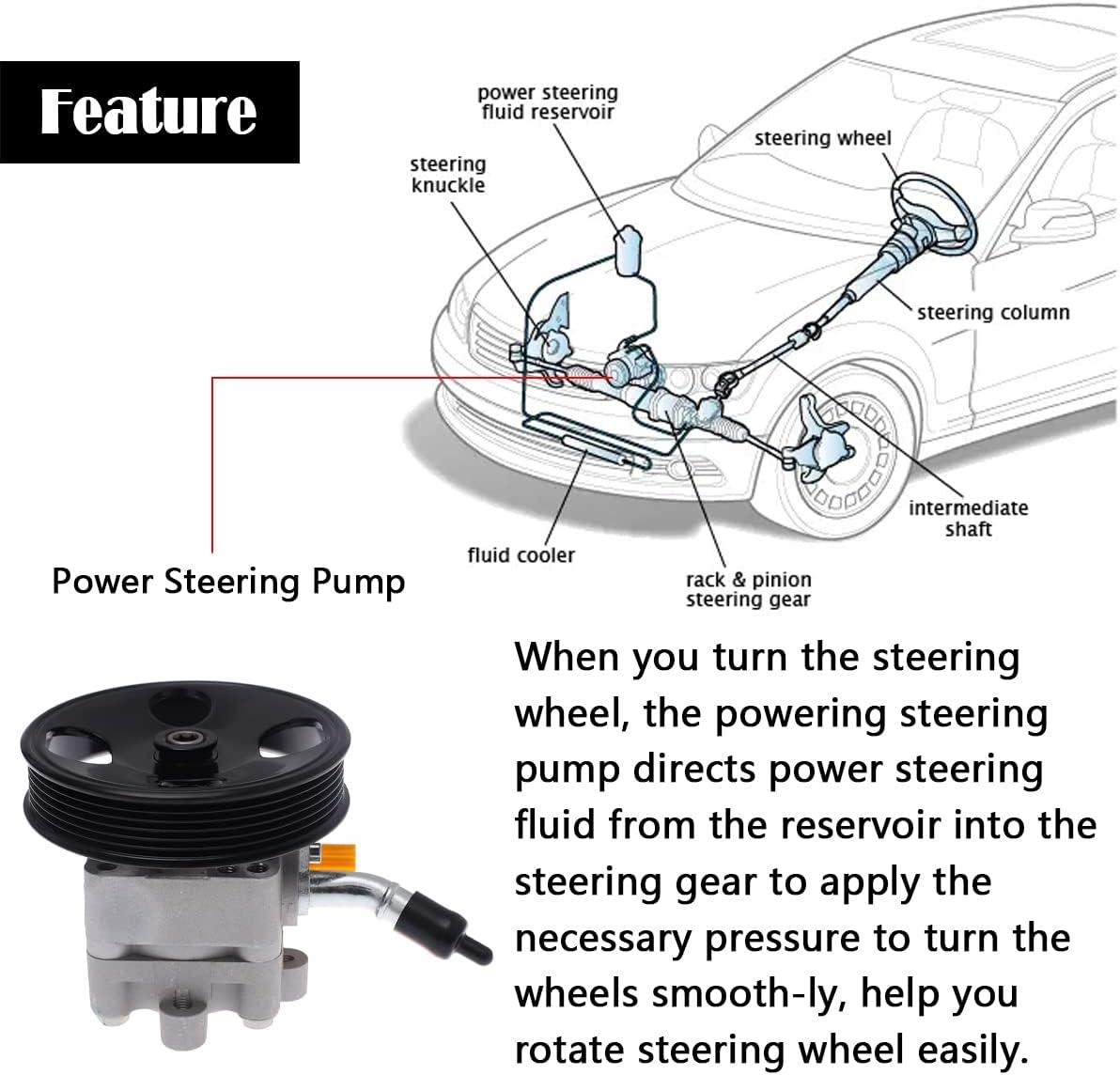 [OE Quality & Replacement] – It can be installed easily without using complicated tools..Each part is built to stringent OE specifications.Stable characteristics,High reliability.100% tested before shipping. Even though it is not a genuine power steering pump, but it works even better and lasts longer.
