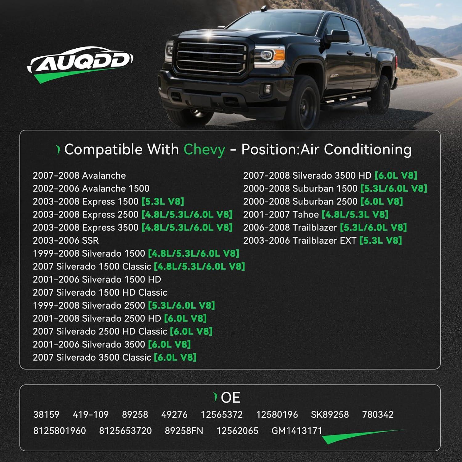 AUQDD 38159 Belt Tensioner and Pulley Assembly (Air Conditioning) Fit For 02-08 Cadillac Escalade/Chevy Express Silverado Suburban 1500 Tahoe/GMC Envoy Savana Sierra Yukon XL 1500 /Hummer H2 /9-7x
