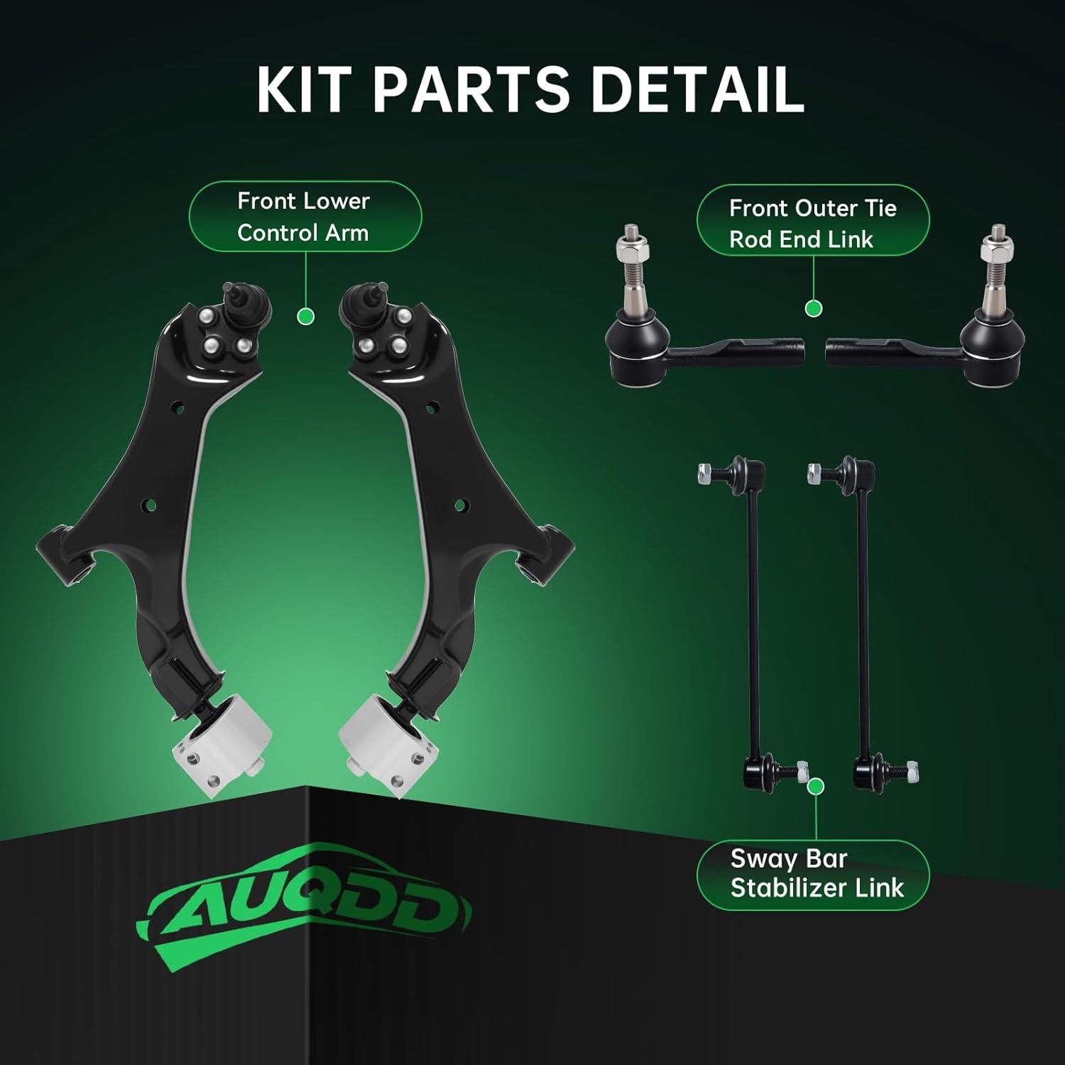 AUQDD 6Pcs Front End Suspension Kit Fit For 2010-2017 Chevy Equinox, 10-17 G-MC Terrain, 2 Lower Control Arm w/Ball Joint 2 Sway Bar Link 2 Outer Tie Rod End (# 524-157 524-158 K750188 ES800640)